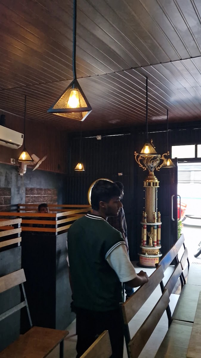 We visited the restaurant last week while traveling through Kattappana. We were specifically looking for a place with good reviews and parking available. It was lunchtime and the restaurant was quite busy. We ordered Chicken Biryani, Peri Peri Chicken Mandi, and a variety of juices (Pineapple Juice, Fresh Lime, Mint Lime, and Pineapple Lime). The chicken in the Peri Peri Mandi was a bit dry but flavorful, with the right level of spice for Peri Peri. The biryani was decent, and the chicken was very tender. Personally, I didn’t prefer the masala in the biryani, but the kids enjoyed it. The juices were fresh and refreshing. Please note that all items, including the juices, had a longer-than-usual waiting time - likely due to the busy hours. A dedicated parking area is available on the opposite side of the road, which is convenient.