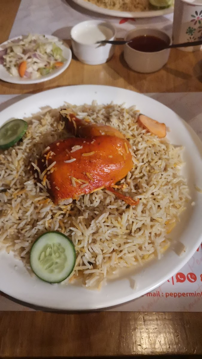 Stopped at this place on our way from Idduki to Thekkady.. Lovely place, foods well above average and borders on excellent. I had a beef biriyani and my partner had a Peri Peri Mandi.. She rates the Mandi as excellent esp their tomato chutney and their cooking of the chicken. My Biriyani had a very good meat to rice ratio..only downside is there was no pappadam. The service was very attentive kudos to our server Selsel and place is clean and efficient